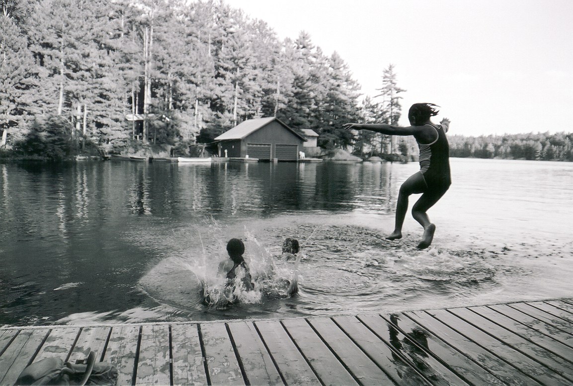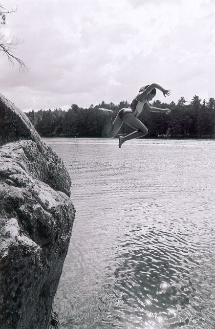 - Swimming off a rock island on the way to the town of Loring.